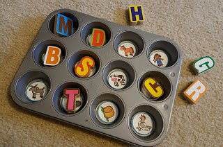 We continued working on beginning sounds using a farm themed muffin tin game and some alphabet puzzle pieces inspired from The Educator’s Spin On It.