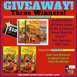 Today I am hosting a BONUS BOOK REVIEW as part of the blog tour for CINCO DE MURDER by Rebecca Adler, the third book in the Taste of Texas mystery series. In this third installment, Lenny, the main character’s right hand pooch, is as spunky as ever, and the author has also graciously provided a GUEST POST for this stop discussing why summer is a great season for pets!