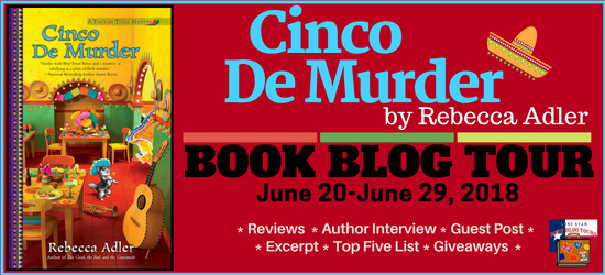 Today I am hosting a BONUS BOOK REVIEW as part of the blog tour for CINCO DE MURDER by Rebecca Adler, the third book in the Taste of Texas mystery series. In this third installment, Lenny, the main character’s right hand pooch, is as spunky as ever, and the author has also graciously provided a GUEST POST for this stop discussing why summer is a great season for pets!