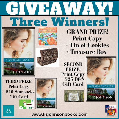 GRAND PRIZE: Print Copy of A Sparkle of Silver, a Tin of Georgia Peach Cookies, a Handmade Wooden Treasure Box; SECOND PRIZE: Print Copy + $25 B&N Gift Card;THIRD PRIZE: Print Copy + $10 Starbucks Gift CardOCTOBER 10-19, 2018
