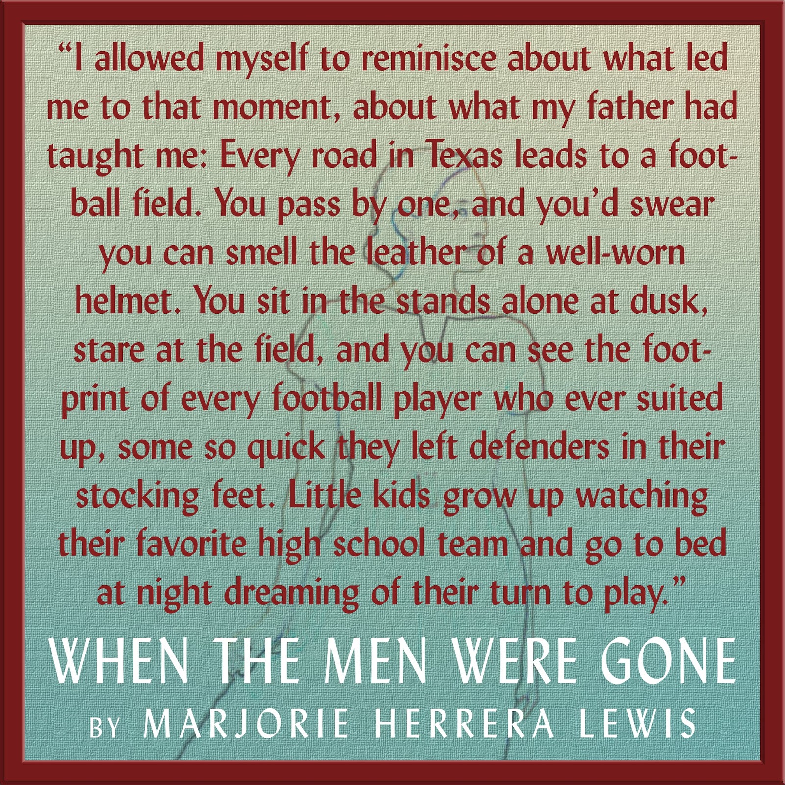 While writing When the Men Were Gone, she became inspired to try her hand at coaching football herself and was added to the Texas Wesleyan University football coaching staff in December 2016. Marjorie has degrees from Arizona State University, The University of Texas in Arlington, Southern New Hampshire University, and certificates from Southern Methodist University, and Cornell University. She is married and has two grown daughters and one son-in-law.