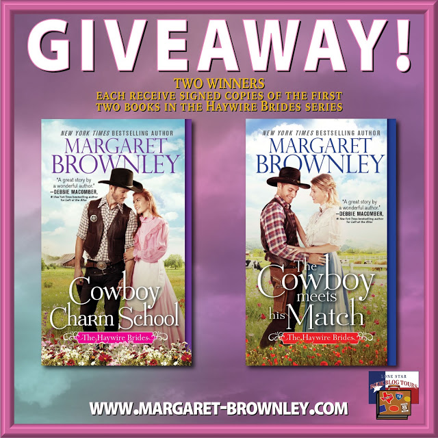 TWO WINNERS each receive signed copies of the first two books in the Haywire Brides series, Cowboy Charm School and The Cowboy Meets His Match