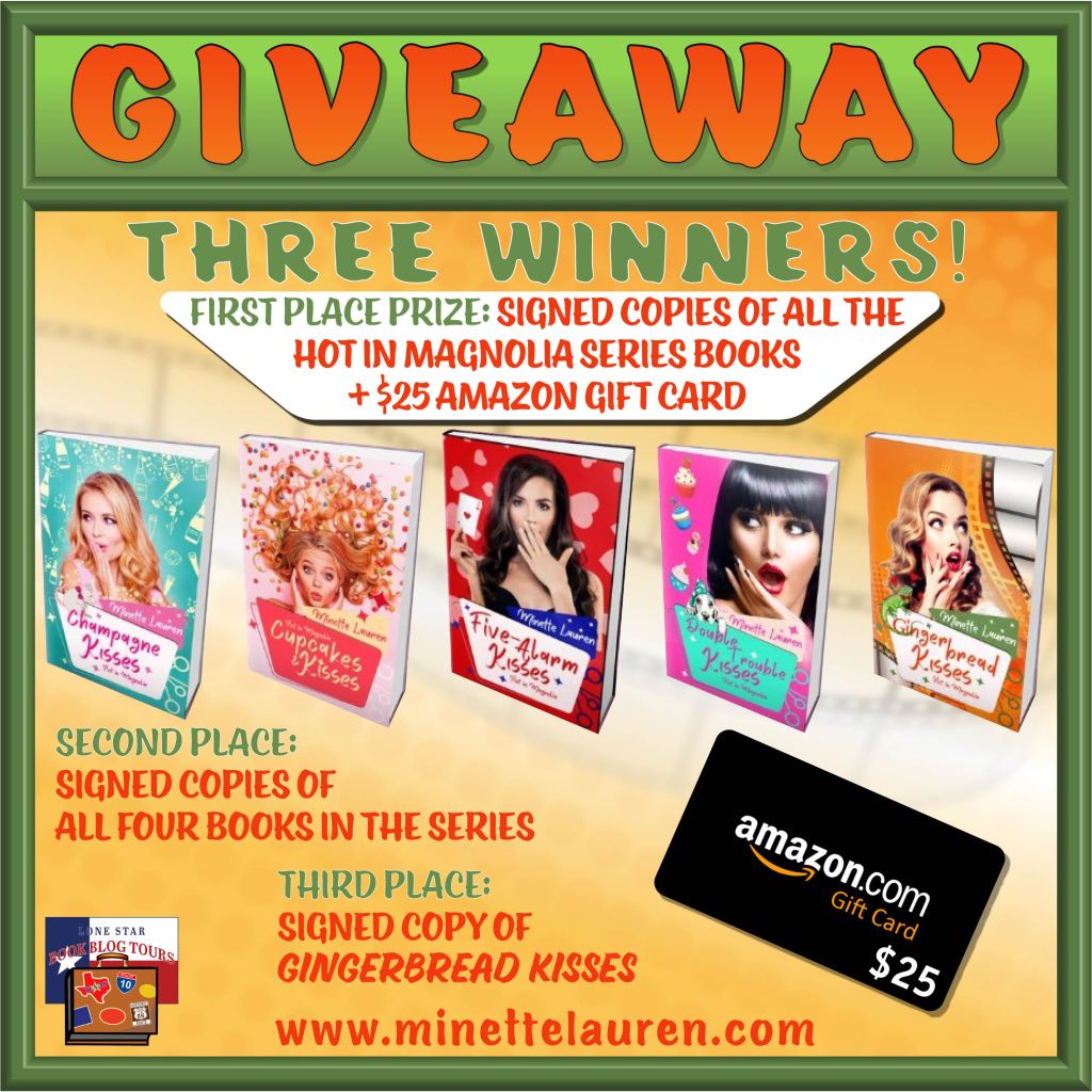 Well, thatโs all we have time for today, Mrs. Rosie. Thank you for visiting and sharing more about Minette Laurenโs, HOT IN MAGNOLIA Series, especially GINGERBREAD KISSES, book four. For readers, if youโre going to Magnolia, make sure to pick up a sweet tea at the Cupcake Diner and Dive while youโre checking out all those hot firefighters.